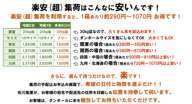 ・集荷及び重さ計測は、佐川急便または未来BOOKが行います。